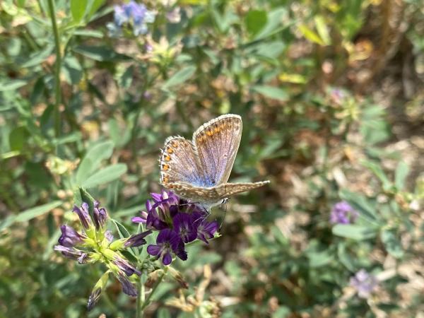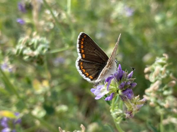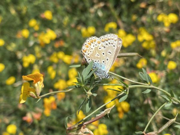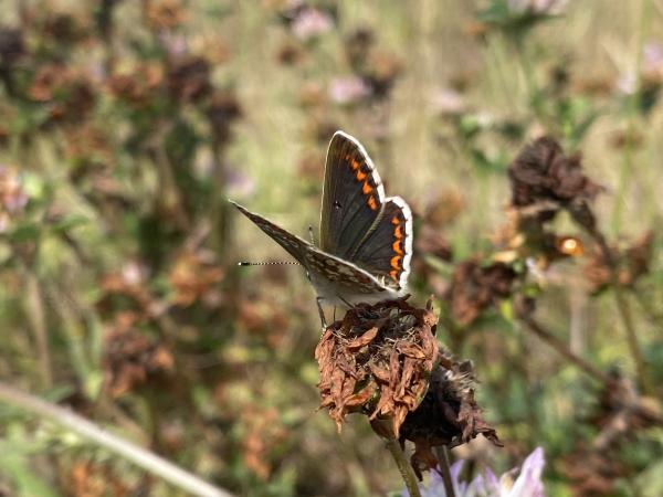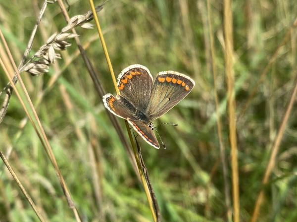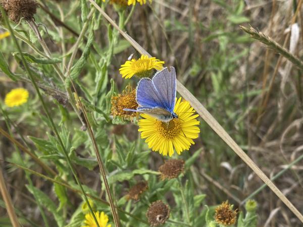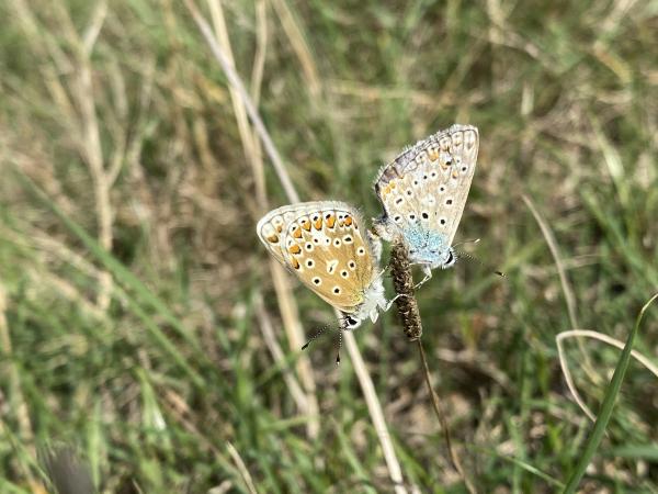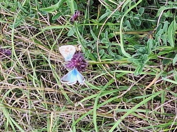 | 25th | Devils Dyke racecourse (TL6161) | Small White, Large White, Small Heath, Brown Argus, Common Blue, Small Copper, Chalk Hill Blue, Adonis Blue | Vince Lea, Louise Bacon And Amy Wolstenholme | Two mating pairs Adonis plus 1 male and 3 females unpaired. Maybe 20+ Chalkhills, more females than males. 4-5 Common Blue in Bomber Gap. 3 Small Copper together plus 1-2 others and similar numbers Brown Argus & Small Heath. Nectar in short supply, Carline Thistle best option. |