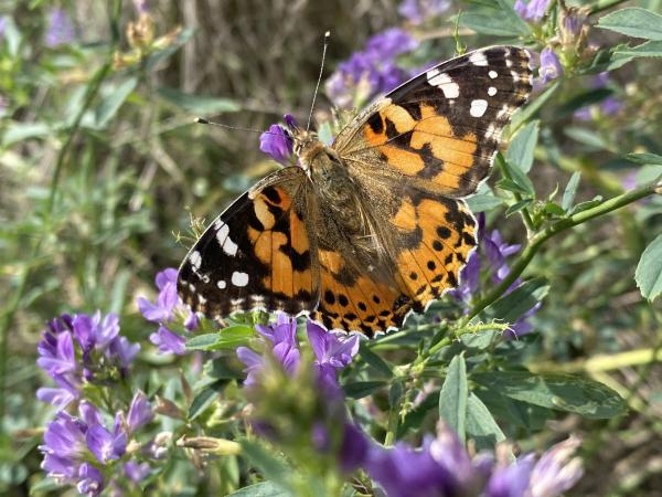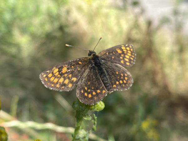 | 24th | Woodwalton Green Lane (TL208812) | Peacock, Red Admiral, Small White, Green-veined White, Small Heath, Brown Argus, Common Blue, Small Copper | Steve Binding + Paul Fisher | 1.20/3pm sun/cloud/breezy. warm when sun was out. Field and beyond solar farm construction site. (1)RedAD.(4)PCock.(6)SmWht. (1)GVWht. 4/5 UN ID Wht.(2)SmCopp. (13m+2fm)ComBlue.(13)BrnArgus some looking really fresh.(1)SmHeath worn. |